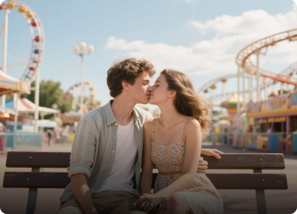 사진과 텍스트를 온라인에서 즉시 낭만적인 키스 영상으로 무료로 변환하세요.