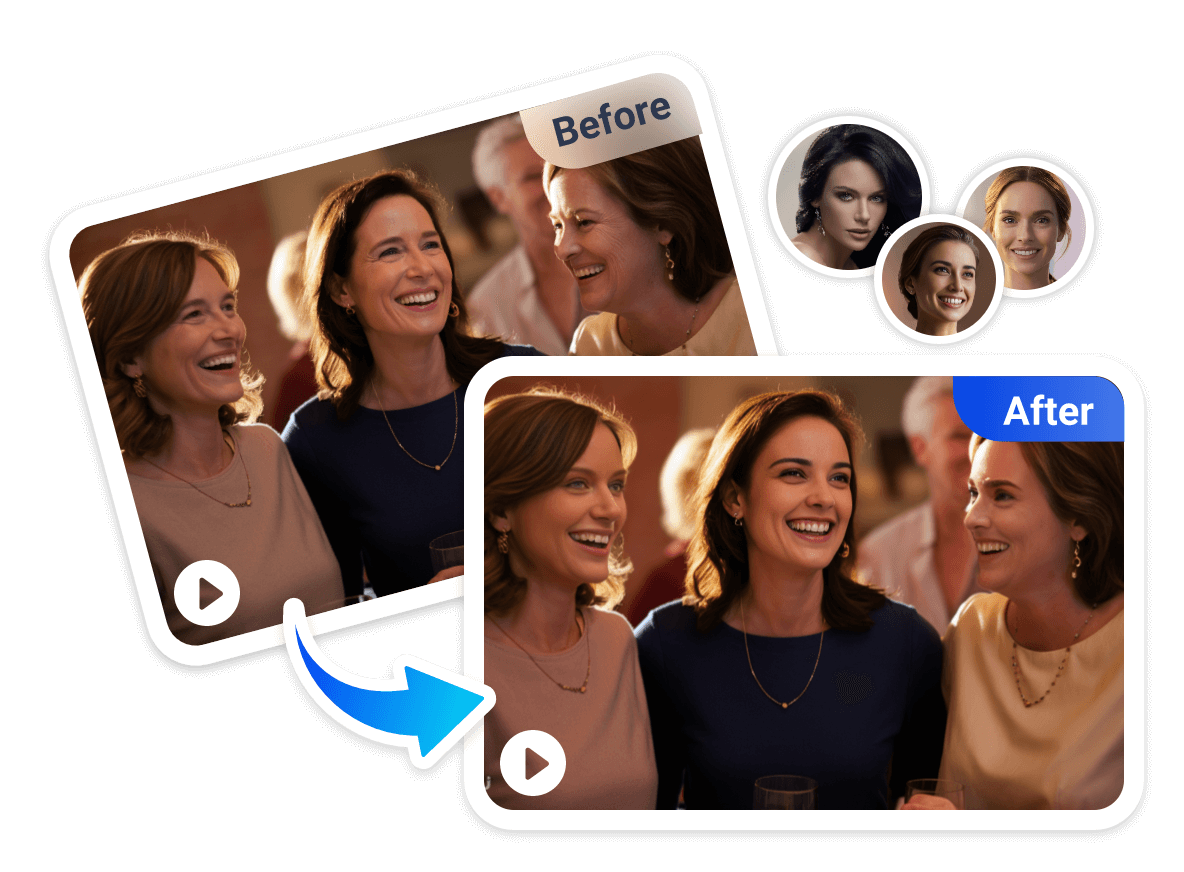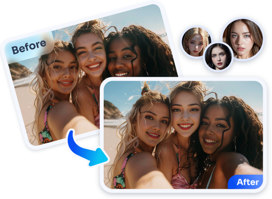 그룹 사진에서 여러 얼굴을 원하는 얼굴로 빠르고 무료로 바꿔보세요. 지금 바로 여러 얼굴을 바꿔보세요.